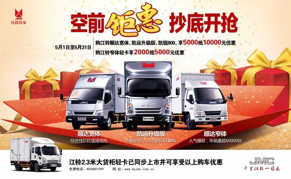 当前位置: 卡车之家 >卡车经销商 > 上海科达汽车销售服务淮安 > 促销新闻 > 空前钜惠,抄底开抢!江铃轻卡等你来购