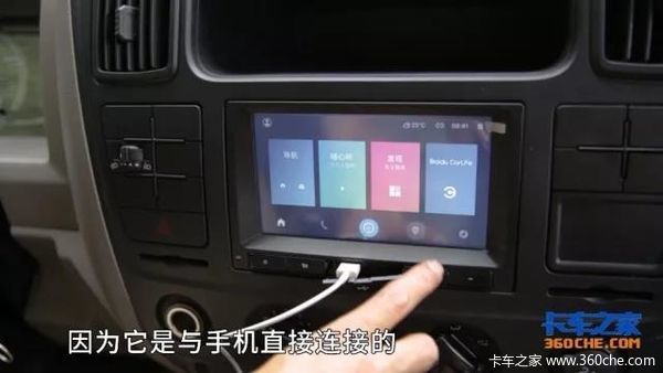 驾驶室后视镜的行车记录仪,可以同时显示车辆前后的实时情况;与手机互联的智能中控,导航、通话等功能一应俱全。