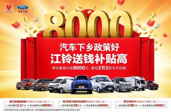 作为最早打响“汽车下乡”政策第一枪的汽车厂商,江铃皮卡拒绝“喊口号”,在春节假期后迅速推出了长达48天的优惠活动。