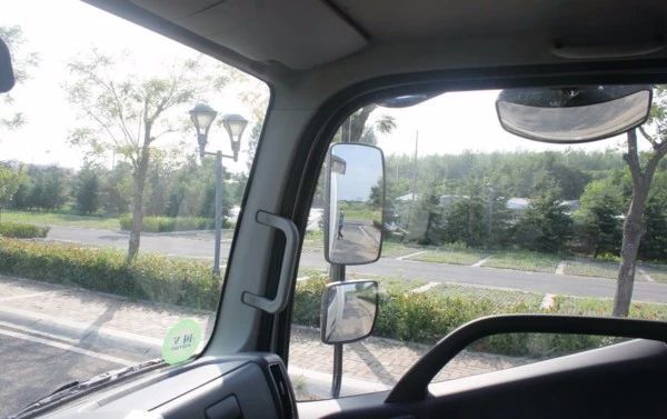 副驾驶侧多了一个侧方照地镜,调整好角度可以清晰监控到右前轮周围的状况,整体来说奥铃TS超级轻卡的视野让人满意。