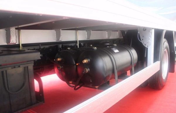 车架左侧空间并列布置了钢质双储气筒,干燥罐大梁外侧安装,无论是排水还是干燥罐保养更换都不会很麻烦。