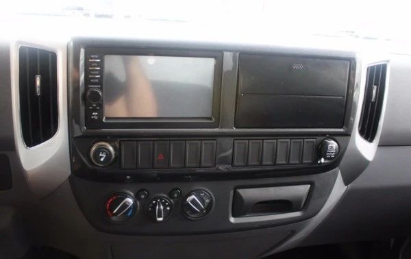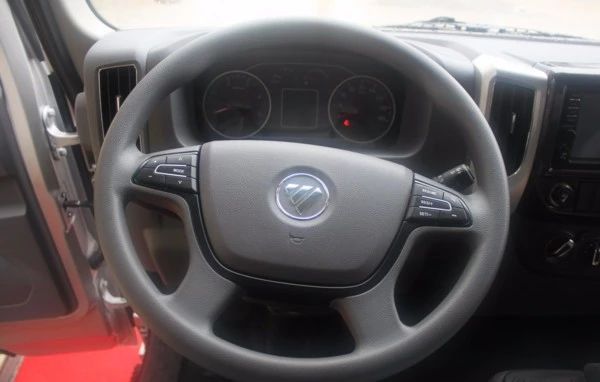 深灰色的内饰配色成熟稳重,更实在的特点是耐脏好打理,仪表台的整体造型和同门的超级轻卡奥铃CTS并无二致。总体来说这款车的内饰很招人喜欢,打开车门那一刻立即会有想进去看看的冲动。