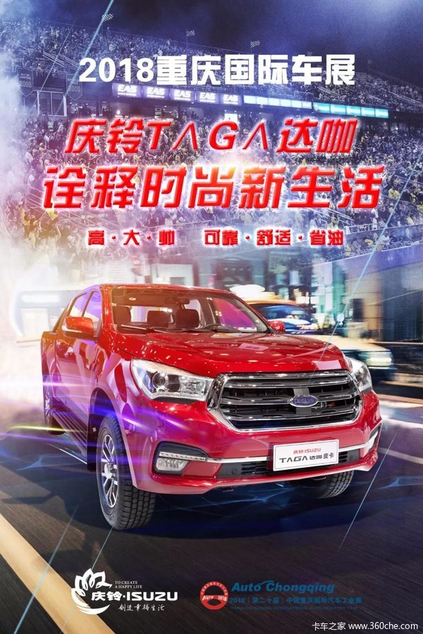 2018重庆车展,庆铃自主品牌皮卡——TΛGΛ达咖豪华标准轴距版(红)和长轴距封闭货厢版(蓝),以犀利、简约、大气、敦厚的设计理念彰显了大气、前卫、时尚、圆润的造型风格。两台展车外观简洁、形体威猛、型面饱满、线条流畅且富有动感,在现场上演了“红蓝争辉”的极魅交响乐章,引领2018皮卡时尚消费新潮流。