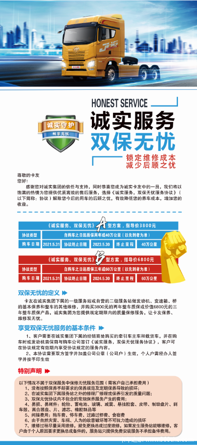 当前位置: 卡车之家 >卡车经销商 > 张家口宏宇汽车贸易有限责任公司 > 促销新闻 > 张家口宏宇宏宇汽贸现推出双保无忧,专业更省心!