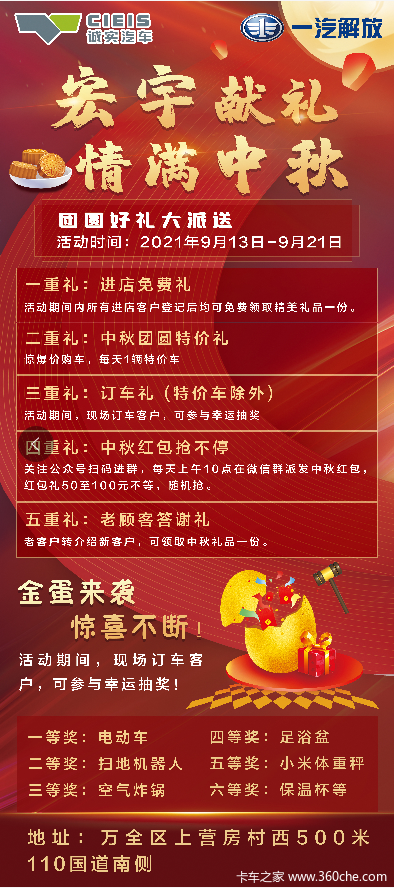 当前位置: 卡车之家 >卡车经销商 > 张家口宏宇汽车贸易有限责任公司 > 促销新闻 > 宏宇献礼——情满中秋团圆好礼大派送!
