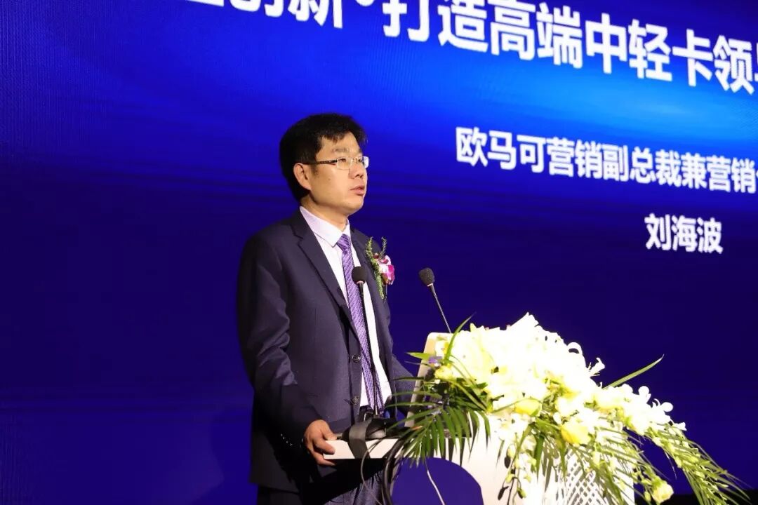 【欧马可事业部营销副总裁、营销公司总经理刘海波在大会上作欧马可营销报告】