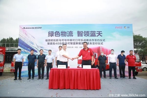 8月31日,在行业共同瞩目下,欧马可智蓝新能源物流车首批40台交付暨福田欧航欧马可与中粮可口可乐战略合作签约仪式在北京大兴盛大启幕。福田汽车集团副总裁、欧航欧马可事业部总裁顾德华,福田汽车集团业务副总裁、福田智蓝新能源总裁秦志东,中粮可口可乐相关领导以及行业权威媒体,出席本次车辆交付仪式。
