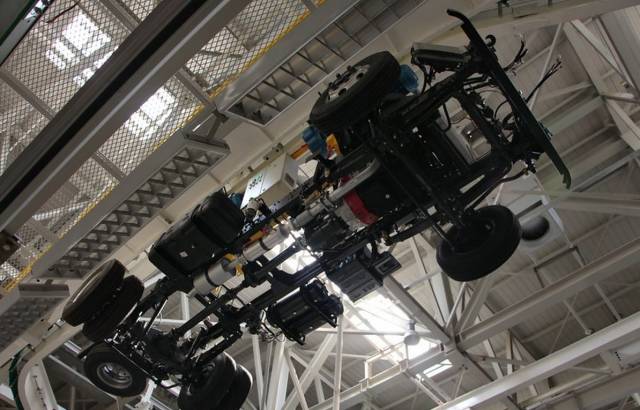 奥铃超级工厂的总装部车间采用模块化装配,设置了底盘线、内饰线、综合线以及发动机分装线。采用标准的双层物流运送系统,实现各分装线的默契配合。既保证了生产的有机运转,也提升了零部件的运输效率。总装车间配置涂胶机器人、油料联网加注、关键力矩控制、前束调整、EMS、PBS等30余套行业水平领先的工艺技术。每台设备前配有数字显示屏,操作人员按照指示操作,加工、传送和检测等工序自动完成。先进的数字化工艺技术达到了国际领先水平,保证了福田奥铃整车的装配质量。