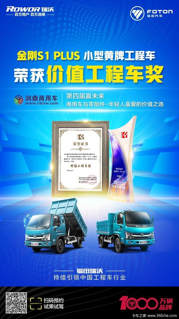 当前位置: 卡车之家 >卡车经销商 > 石家庄建雄汽车(福田瑞沃) > 促销新闻 > 福田瑞沃金刚S1 PLUS小型黄牌工程车荣获“价值工程车奖”