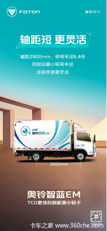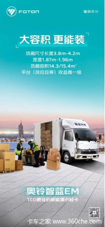 更重要的是,奥铃智蓝EM搭载福田第三代自主电控系统+电驱桥,频率从150MHz提升至200MHz,精准处理需求扭矩、能量分配,传动效率更好,在核心三电技术的支撑下,奥铃智蓝EM在城配运输做到了真正的续航无忧。