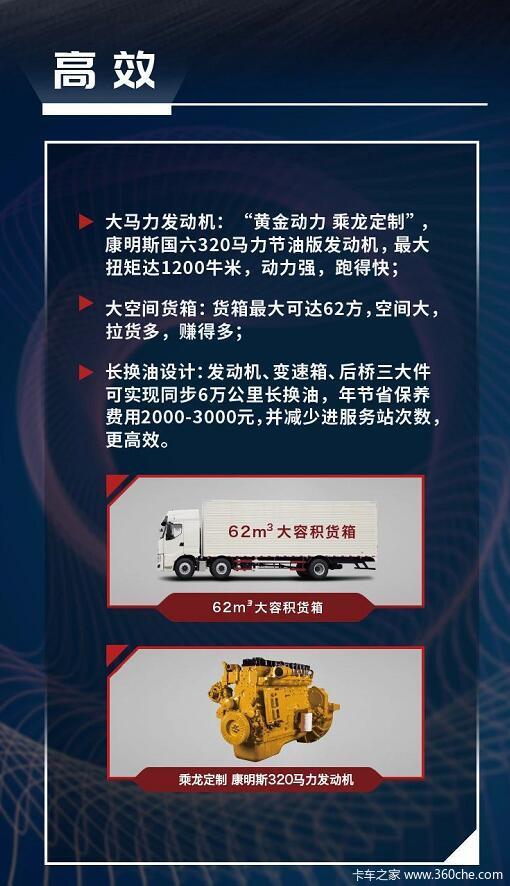 当前位置: 卡车之家 >卡车经销商 > 柳州市方盛汽车 > 促销新闻 > 搭载康明斯节油版发动机、62m?大容积货箱,乘龙H7国六载货车专