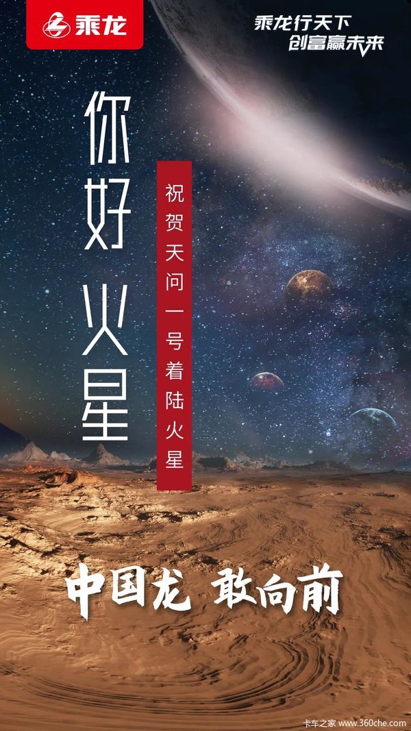 当前位置: 卡车之家 >卡车经销商 > 柳州市方盛汽车 > 促销新闻 > 你好 火星 | 乘龙祝贺天问一号着陆火星!