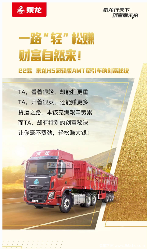 当前位置: 卡车之家 >卡车经销商 > 柳州市方盛汽车 > 促销新闻 > 22款乘龙H5 超轻版AMT牵引车 | 一路“轻”松赚,财富自然