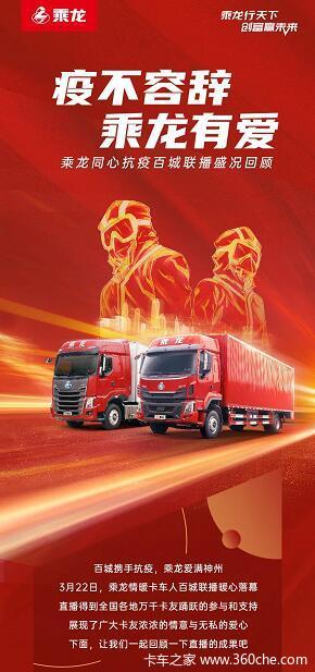 当前位置: 卡车之家 >卡车经销商 > 柳州市方盛汽车 > 促销新闻 > 疫不容辞,乘龙有爱,同心抗议百城联播盛况回顾