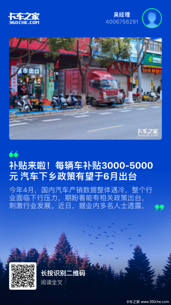 当前位置: 卡车之家 >卡车经销商 > 柳州市方盛汽车 > 促销新闻 > 补贴来拉!每辆车补贴3-5000元 汽车下乡政策有望于6月出台