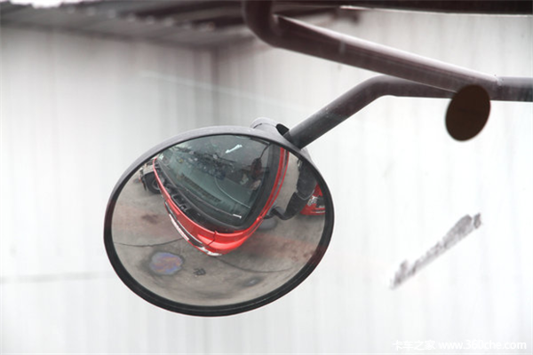 早前的重汽T7H,驾驶内的照地镜一直都是诟病,右侧盲区比较大,经常有卡友反应T7H右侧容易磕碰到货台等障碍物。现新款的重汽T7H540马力的车型,重新设计了照地镜支架,改变了照地镜的位置及角度,现右侧几乎没有什么盲区。