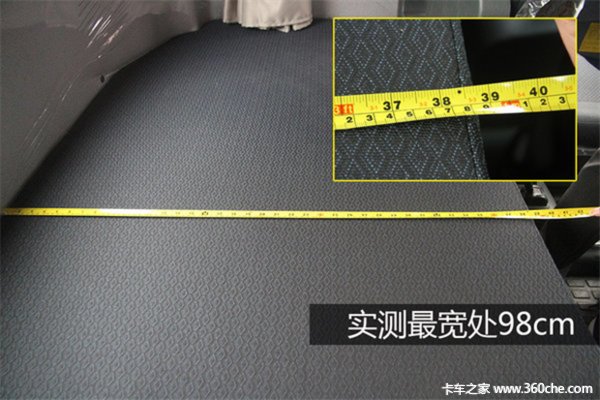 新款重汽T7H540马力牵引车的最大亮点莫过于在驾驶室内加宽了卧铺,堪比豪华双人床。经实际测量,这款卧铺的最宽度的地方达到了98厘米,基本上算是国内卡车上装配的最宽卧铺了。