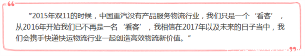 5月6日,众多物流企业“掌门人”以及车企高管齐聚上海汽车会展中心,在以“新时代,新物流”为主题的“中国公路货运产业大会暨货运企业家高峰论坛”上共同讨论中国物流未来发展新方向。新时代,需要新物流。新物流,创造新价值,而中国重汽凭借着“互联网+”的“东风”,实施三大服务升级,助力高效物流运输,给用户以及物流企业创造出全新的价值。从卖产品到卖服务,中国重汽针对行业痛点放出的服务三大招儿,让其成为快递快运运输装备行业杀出的一匹特立独行的黑马。