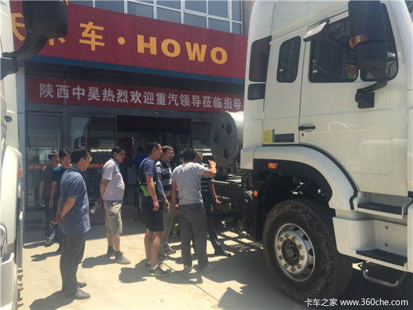 被吸引过来的卡友们,纷纷围着讨论,我们的卡车总部的技术老师很耐心的给卡友们讲解。