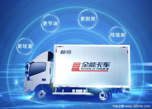 帅铃全能卡车,基于轻量法规要求与日常运输需求,从新材料、新结构、新工艺三方面进行科学化轻量化升级。累计完成了15个大项,40个小项轻量化子技术升级,应用全新180轻量化底盘平台与模块化设计,采用高强度、高精度的轻量化制造新工艺,同时应用了如铝合金轮辋、铝合金防护、铝合金储气筒等大量高品质铝合金组件,在保持车身强度与承载强度的基础上,使整车重量降低10%,从而使燃油效率提高约6%~8%。