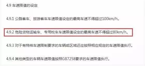在征求意见稿中,关于危险货物运输车辆,其车速限值设定的最高车速不得超过80km/h;而其他类型的车辆车速限值按照GB7258要求的车速限值执行。