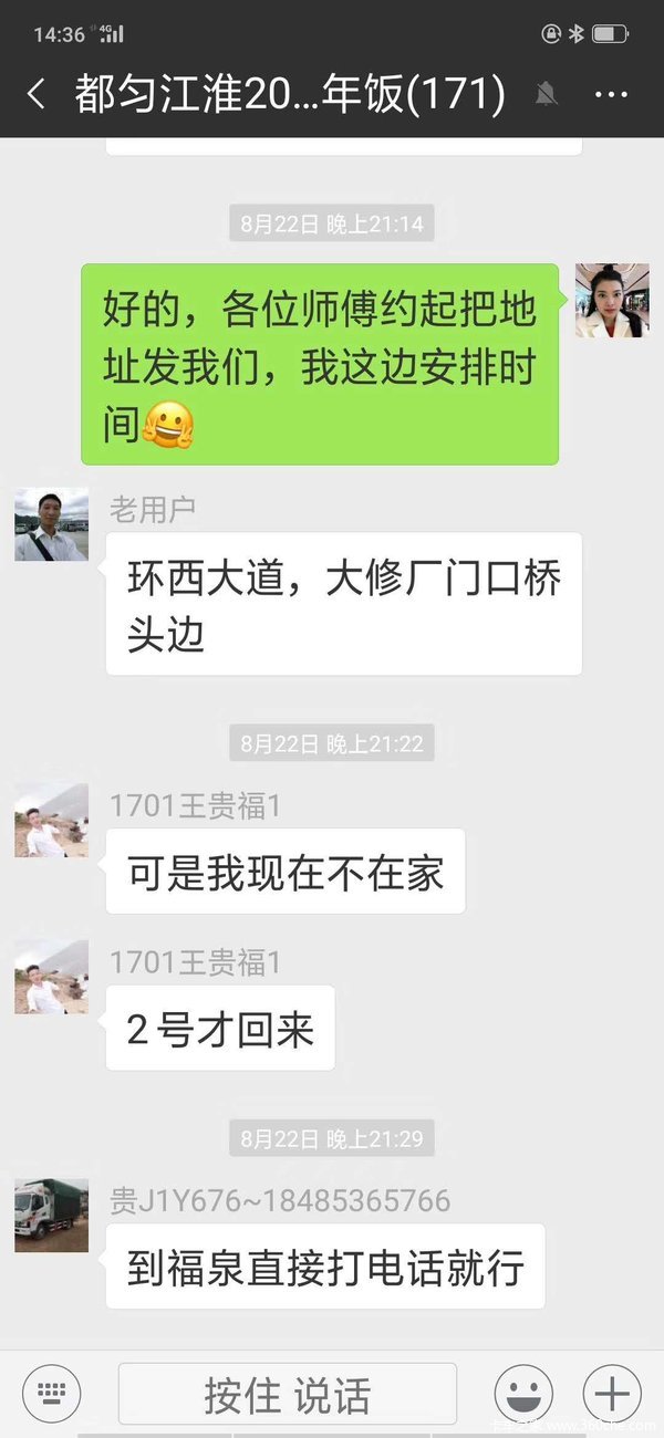 都匀江淮的各位师傅们听说我们要开展走进用户麻辣骏友会、茶友会活动,纷纷发来了微信,邀请我们到各县份市场举办活动,9月我们公司将在9月15日和9月20日开展骏友会和茶友会的活动,诚邀新老客户竞品客户意向客户们参加,凯里的朋友我们这里也会安排的~~我们都匀江淮邀约不断接收中