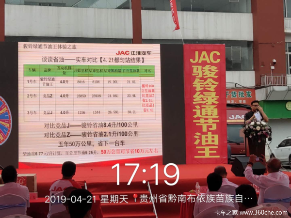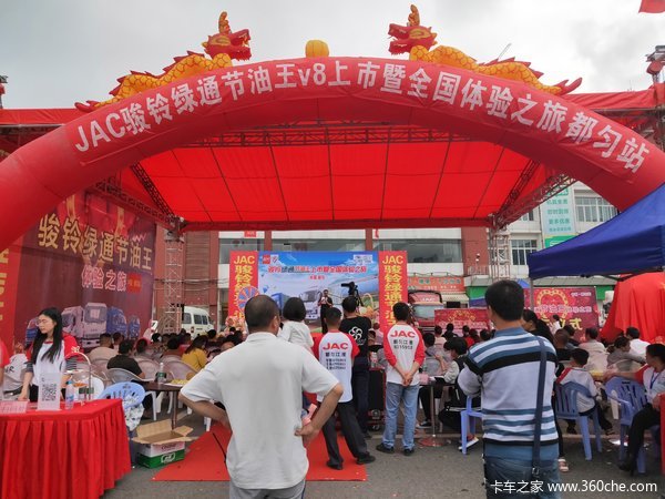 2019年04月21日,都匀市金兴汽车销售有限公司在都匀市灵智商贸城果蔬市场举办了标题为“骏铃绿通节油王上市暨全国体验之旅”的发布会,通过此次活动向广大轻卡用户隆重推出江淮轻卡最新系列骏铃V8车型,并让所有在场来宾亲眼见证了江淮骏铃轻卡车的安全性、节油性和舒适性。