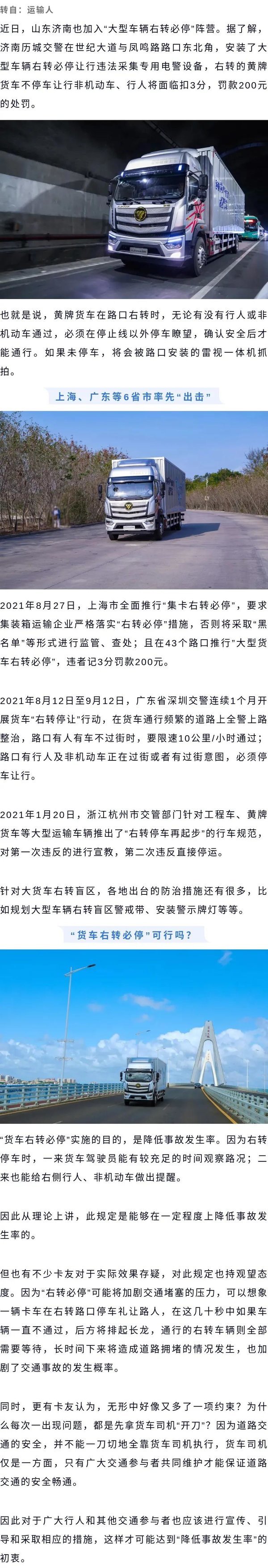 当前位置: 卡车之家 >卡车经销商 > 南阳市顺达汽车销售服务 > 促销新闻 > 山东济南大货车右转需停车 违者将罚款200扣3分