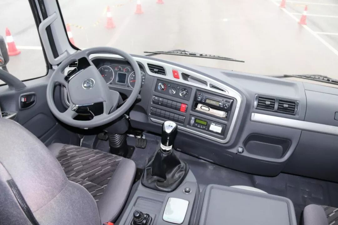 S5中卡目前主要匹配7挡和8挡变速箱,试驾车型搭载的是法士特8挡箱,可以通过高低挡开关在1-4挡和5-8挡之间切换。通常在试驾重型牵引车时,由于发动机扭矩较大,在空载状态下可以高挡直接起步,没想到这款S5中卡同样具备这样的实力。在5挡直接起步时,并不用对离合器操作特别小心,车辆平稳起步,发动机的转速几乎不受影响。而且,动力响应直接,到了6挡就可以将车速提升到50km/h以上。在等信号灯时,并不会因为起步和加速时间慢,而被后面的车鸣笛催促。