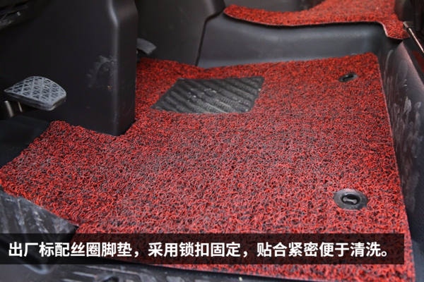 除了变速箱,这款车驾驶室内部的一些细节也做了不小的升级,比如出厂就标配了丝圈脚垫。卡友们在提车以后再也不用专门去购买脚垫了,这套原厂的脚垫不仅覆盖范围大,而且还在油门和刹车踏板的位置做了加强,更加耐磨。最重要的是,它采用锁扣固定,有效防止滑动的同时还方便拆卸清洗,非常贴心。