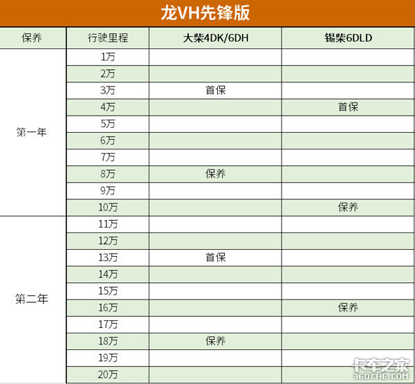 这三款发动机并不是全新的产品,对解放载货车熟悉的用户来说应该不会陌生,解放动力链的成熟已无需置疑。但要说特别的是,龙VH先锋版上搭载的,均是长换油发动机:大柴4DK、6DH发动机换油周期为5万公里(首保3万公里),锡柴6DLD换油周期则达6万公里(首保3.6万公里)。