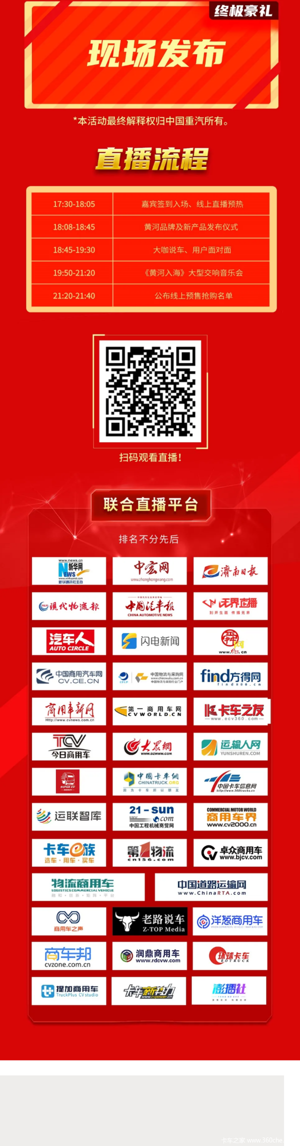 当前位置: 卡车之家 >卡车经销商 > 上海集鑫重型汽车销售 > 促销新闻 > 今日17:30,中国重汽黄河品牌暨新产品发布仪式网络直播正式开启