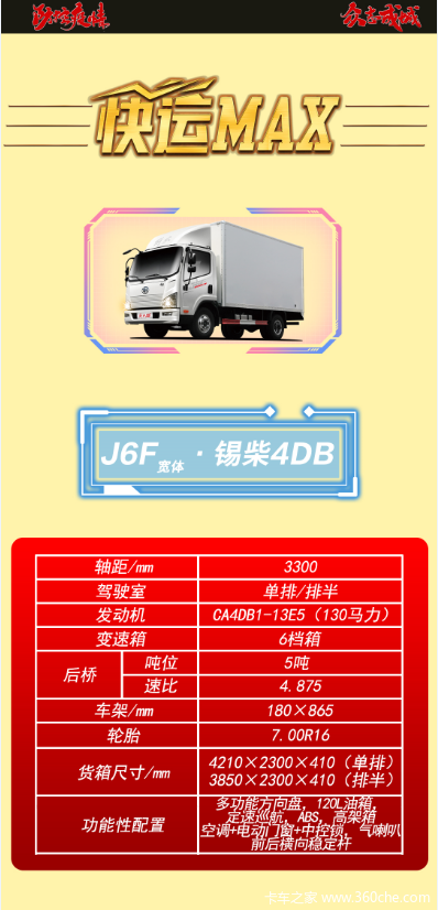 当前位置: 卡车之家 >卡车经销商 > 广西骏宝汽车销售服务(一汽解放轻卡) > 促销新闻 > 热门车型推荐——快运MAX-J6F.锡柴4DB