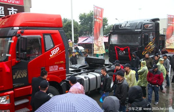 活动现场解放J7 6×4牵引车及J6P领航版 6×4牵引车两辆展车吸引了大量卡友驻足观看,通过与产品零距离接触,实地体验,让卡友得到新品的第一感受。