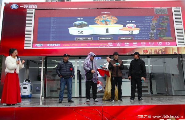 卡友长期外出工作,为家人劳苦奔波,难得有一次同卡友在一块放松娱乐的机会,本次一汽解放全国巡演,在活动现场为广大卡友准备了大量的互动游戏环节,包括智力游戏、反应测试、体力比拼,这是一场属于卡友的欢聚时光,让广大卡友在身心愉悦的同时,也能体会到和身旁卡友们的那份轻松快乐。