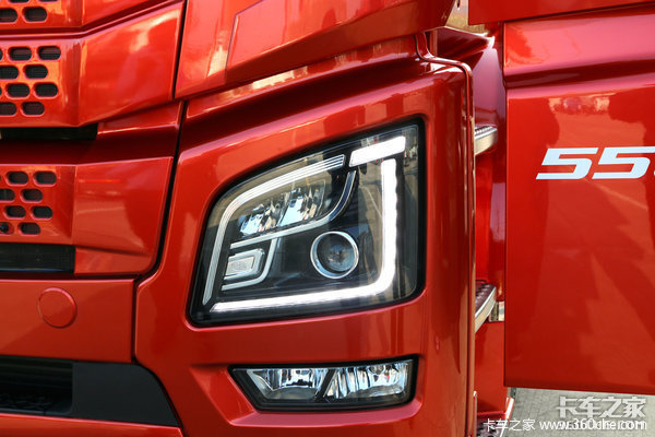 相比较之前的解放JH6,2019款智尊版JH6的大灯变化最为明显,采用了一个全LED的前大灯。日间行车灯采用外部直角光带设计,非常亮,近光灯加装透镜,全部采用LED光源,并且大灯跟小车一样,专门制作了品牌标识