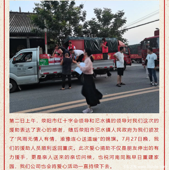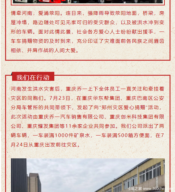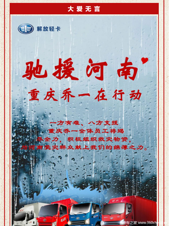 当前位置: 卡车之家 >卡车经销商 > 重庆乔一汽车销售 > 促销新闻 > 情牵河南,爱涌荥阳,驰援河南,我们在行动!