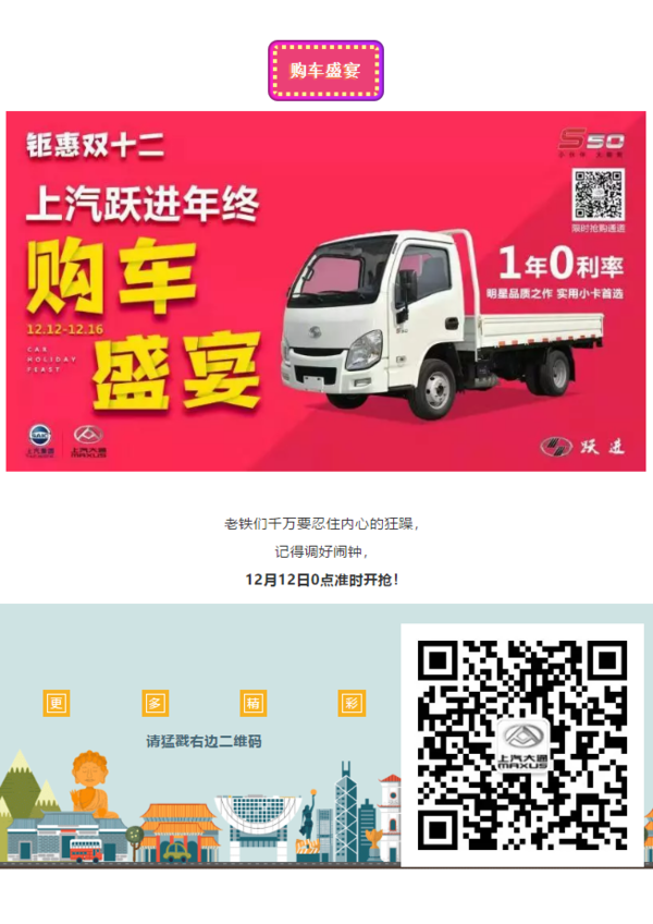 当前位置: 卡车之家 >卡车经销商 > 北京天通跃进 > 促销新闻 > 双十二福利提前曝光,好到超乎想象