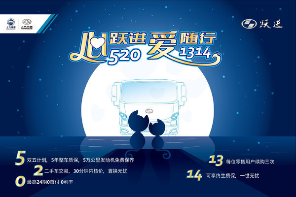 为了让用户选车、用车、置换、续购整个车辆生命周期都能做到买车、用车、换车无忧,跃进发出爱的“表白宣言”:“5201314”。