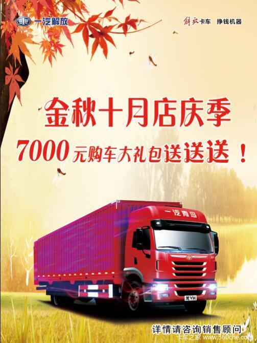 当前位置: 卡车之家 >卡车经销商 > 淄博一汽销售服务有限责任公司(青岛解放) > 促销新闻 > 金秋十月店庆季,7000元购车大礼包