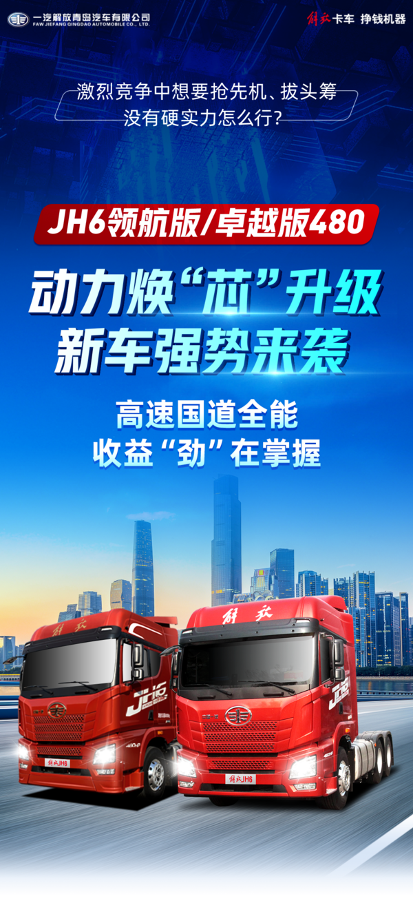 当前位置: 卡车之家 >卡车经销商 > 安徽天汇汽车销售服务(青岛解放) > 促销新闻 > 【JH6领航版/卓越版480】全新升级动力澎湃,高速国道全能!