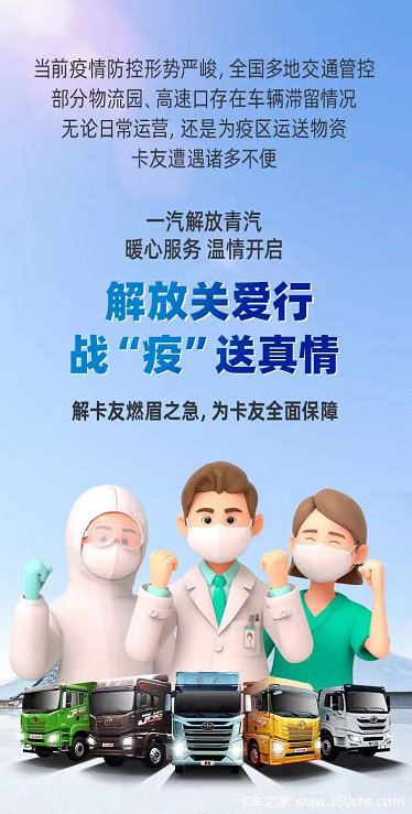 当前位置: 卡车之家 >卡车经销商 > 安徽天汇汽车销售服务(青岛解放) > 促销新闻 > 解放关爱行,战:疫“送真情,一汽解放青汽为卡友全力护航!