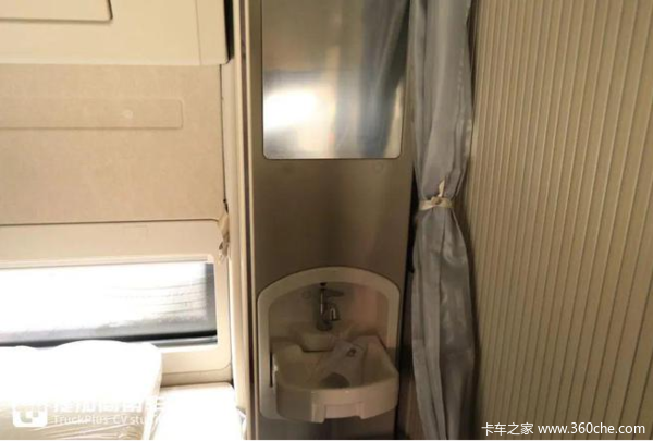 除了平常开车之外,驾驶员有时候可能还要变身装卸工的角色,有些货是要自己卸的,要是累个大汗淋漓,洗澡可成了一大难题。在解放鹰途头等舱的后面设置有单独的洗漱间,洗漱间内镜子、折叠洗手盆、延伸式水龙头、浴室灯一应俱全,在车内也可以实现洗澡的功能。像睡觉之前洗个澡,解解乏,也不用去服务区和别人抢热水,便捷性大大提升。