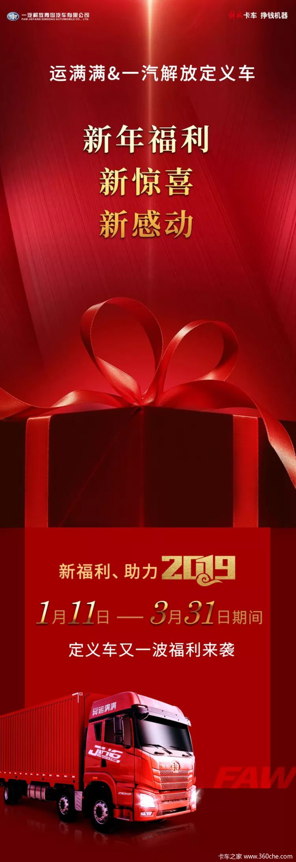 当前位置: 卡车之家 >卡车经销商 > 安徽天汇汽车销售服务(青岛解放) > 促销新闻 > 2019年定义车第一波福利来袭!