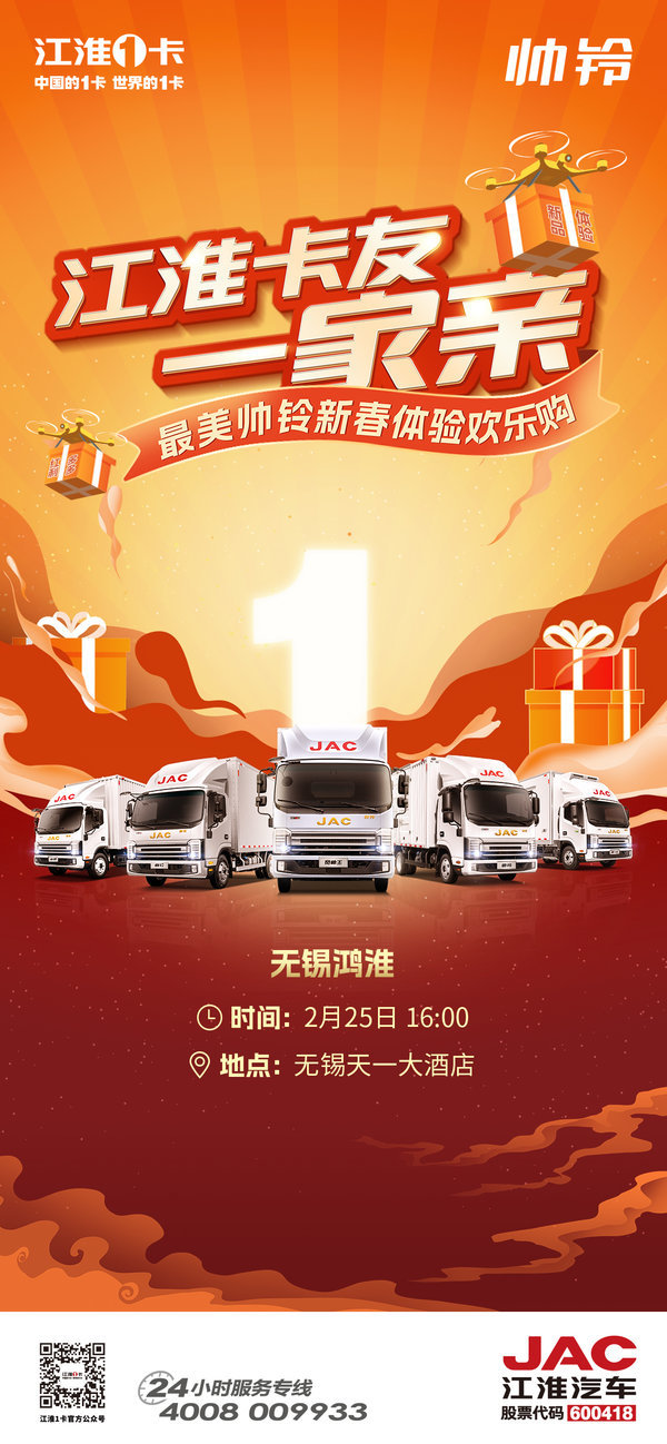 当前位置: 卡车之家 >卡车经销商 > 无锡鸿淮汽车销售服务 > 促销新闻 > 江淮1卡帅铃会员日 | 帅铃礼相送!