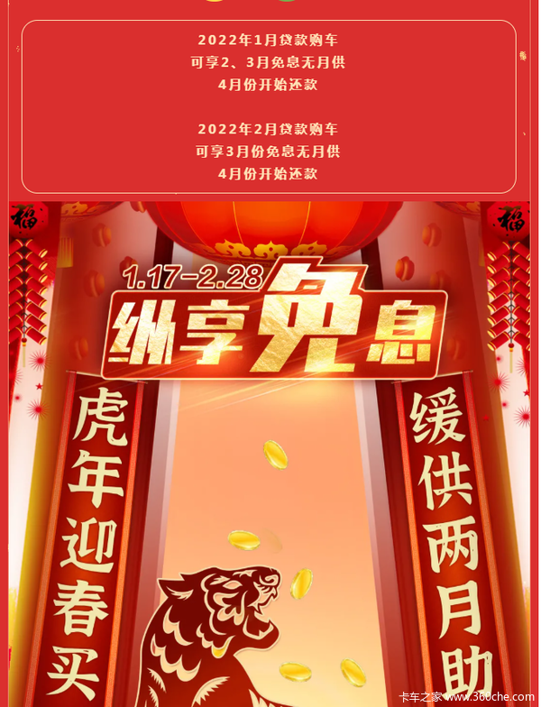 当前位置: 卡车之家 >卡车经销商 > 昆明宝道汽车销售服务 > 促销新闻 > 虎年迎春买东风,缓供两月助开工!! !