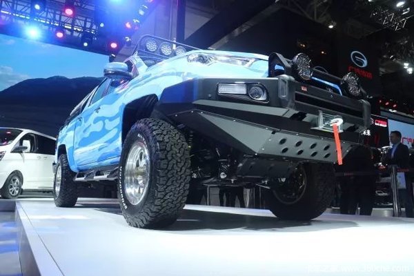 美式越野风格前护杠具备撞击缓冲的作用,拉力式车顶灯架提升夜视的同时也彰显出西部狂野的效果,让整体的车身造型更凶猛。
