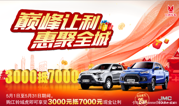 当前位置: 卡车之家 >卡车经销商 > 东莞市江铃汽车销售 > 促销新闻 > 江铃域虎3000抵7000巅峰让利!