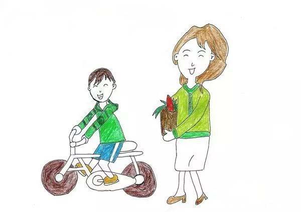 母亲在一旁手把手教你骑自行车。