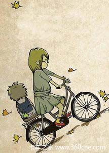 母亲每天骑着单车接送你上下学。